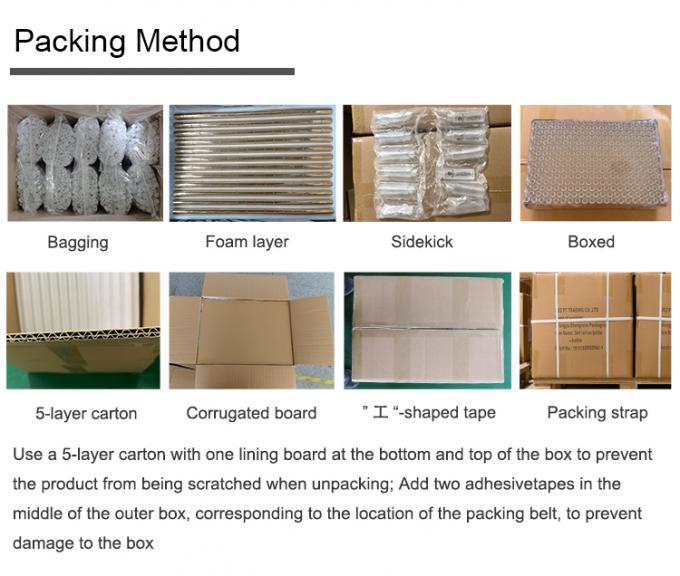 2Προστατευτική συσκευασία: Για περαιτέρω προστασία από γρατζουνιές, σκόνη και υγρασία κατά τη διάρκεια της αποστολής, περιβάλλουμε τα μεμονωμένα πακέτα με υψηλής ποιότητας πλαστική σακούλα ή προστατευτικό φιλμ,παρέχοντας ένα πρόσθετο στρώμα άμυνας.
